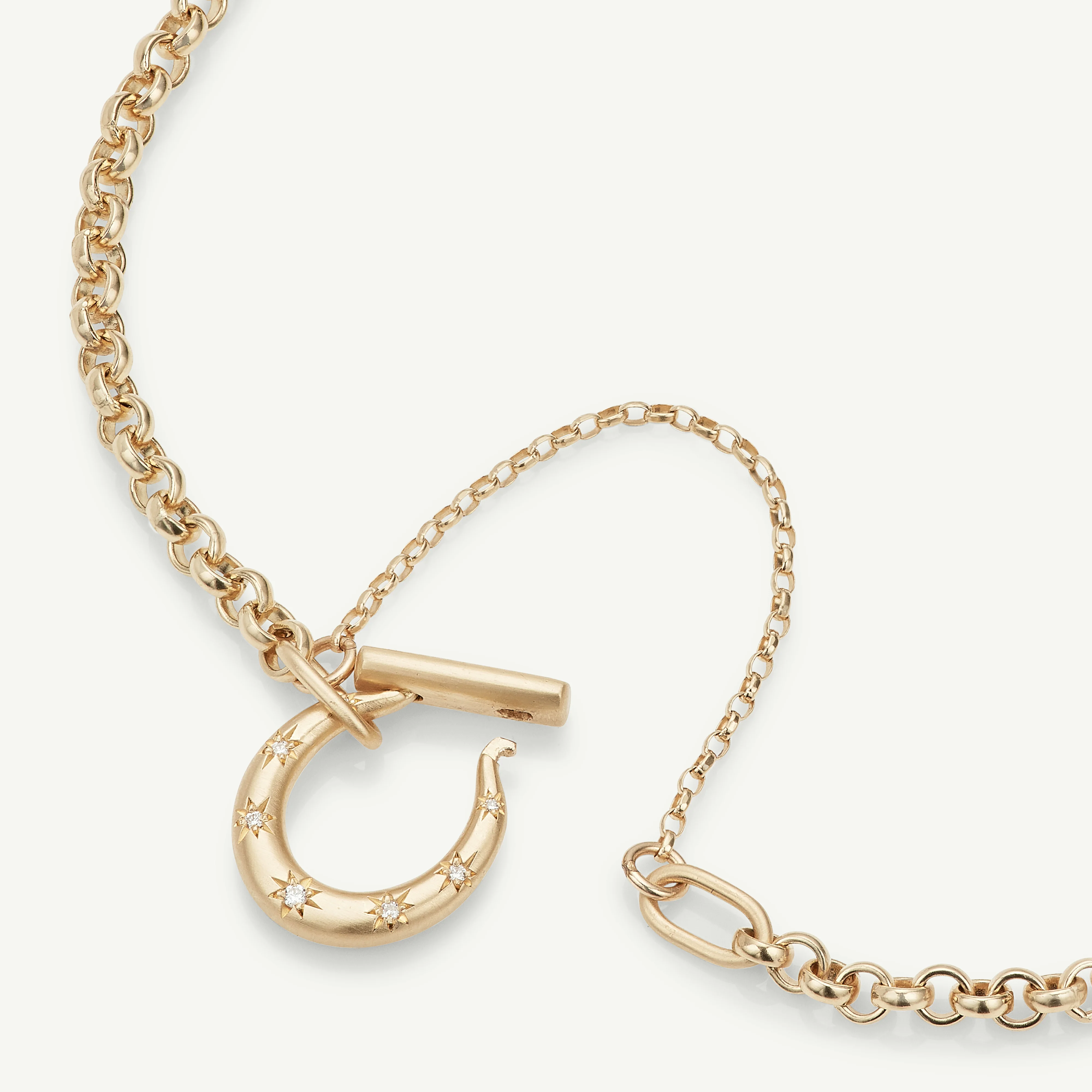 Each Horseclip is studded with seven star-set diamonds, a nod to the age-old Irish proverb that seven iron nails ward off evil spirits. Our Horseclips face skyward, attached to our heavy chains, collecting luck and fortune as you travel through life’s magical twists & turns.