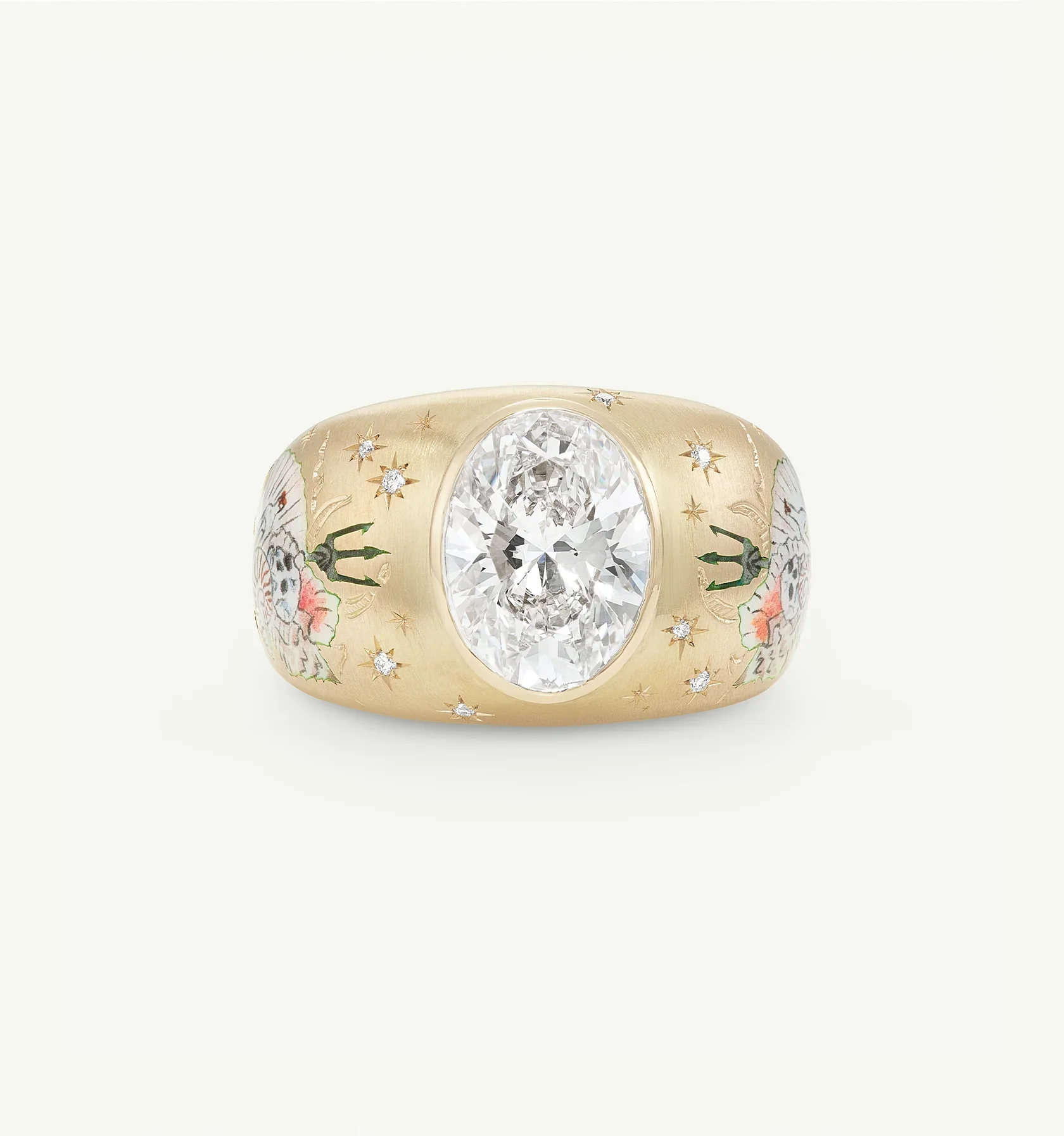 Cece’s engagement rings reinvent the classic solitaire with her signature style. Taking the helm is a 3.00ct oval-shaped diamond, a timeless symbol of never-ending love.