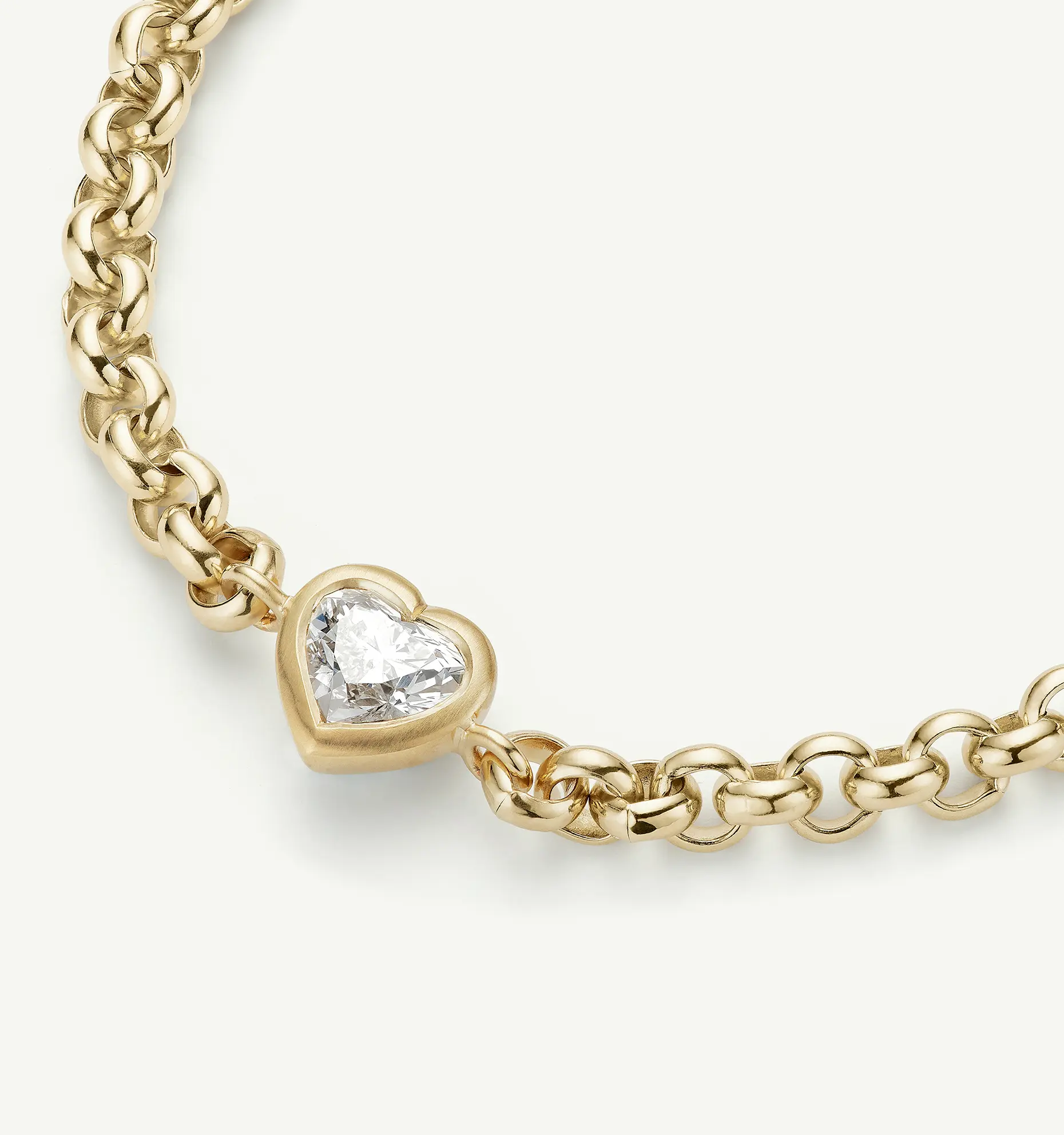 Cece gives the sentimental heart motif a modern air, embracing the diamond in a sleek flush setting. A substantial belcher chain with tactile, rounded links makes the chain bracelet both satisfying and striking to wear.